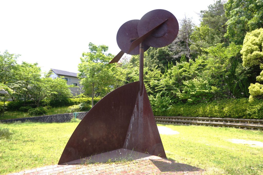比較的カラフルな作品が多い新宮 晋先生ですが、コールテン鋼を材質とした落ち着いたイメージは、複合型文化施設という設置場所に溶け込むよう考慮され制作されました。
