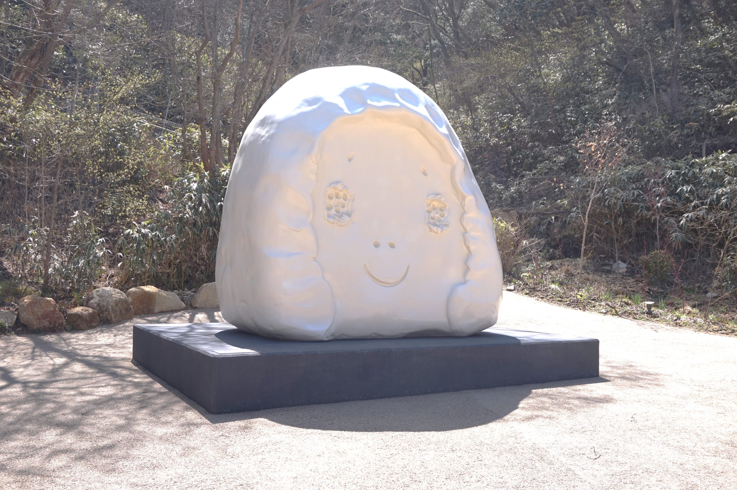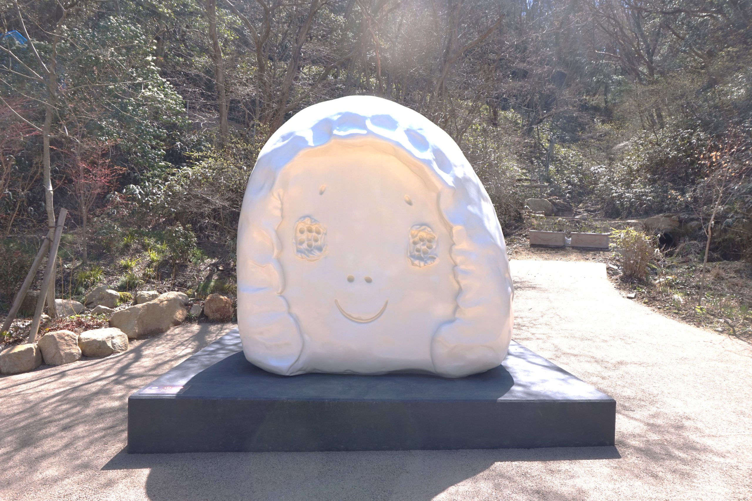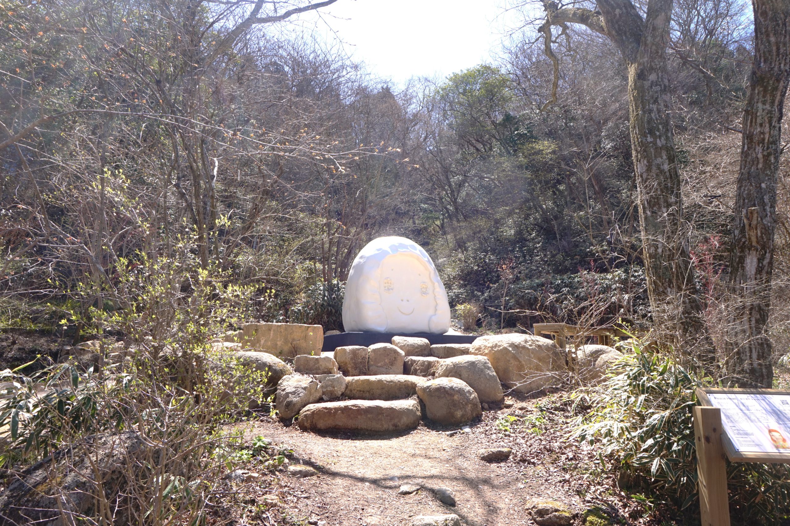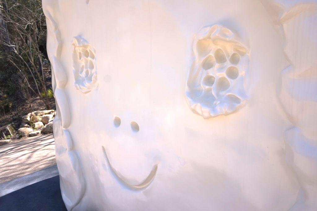 この作品は六甲の森でどんな顔をしているのだろう。訪れるみなさんと共に一緒に溶け込んで森の中でずっと微笑んでいてほしいです。ー作家のことば より