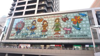 大阪第3の都市、天王寺エリアのビル壁面に設置された、草間 彌生先生のパブリックアートです。